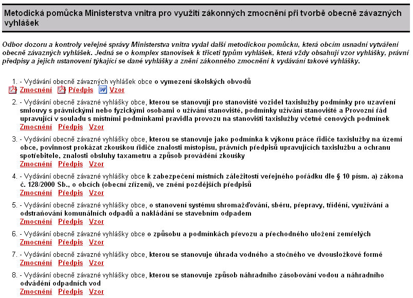 Pravidla pro vydávání právních předpisů obcí, hlavního města Prahy a krajů, přehled zákonných zmocnění při tvorbě obecně závazných vyhlášek a vzory právních předpisů obcí. To vše bezesporu potřebujete na svém úřadě, abyste co nejjednodušším způsobem mohli vytvořit všechny potřebné obecní vyhlášky a nařízení.